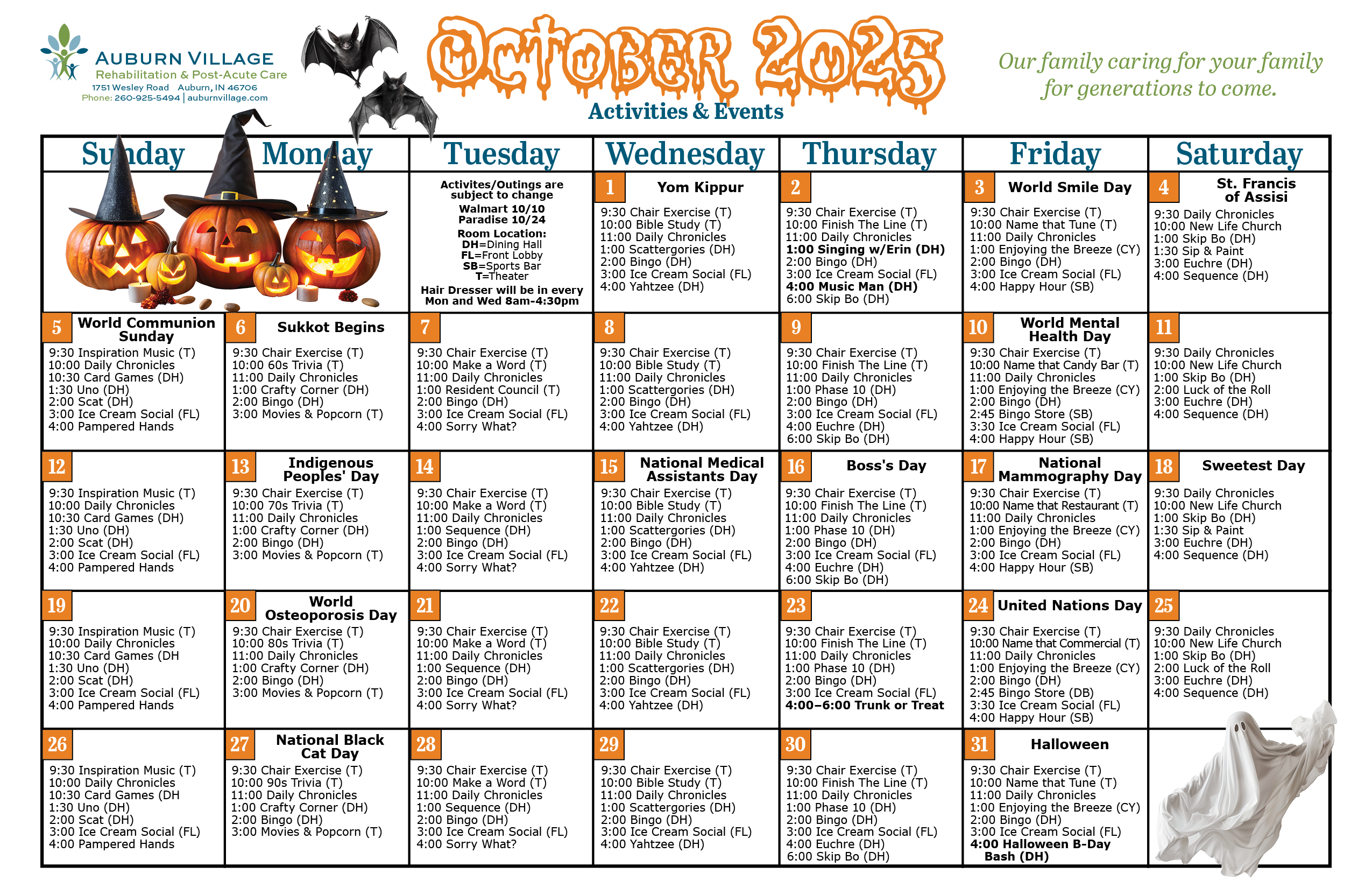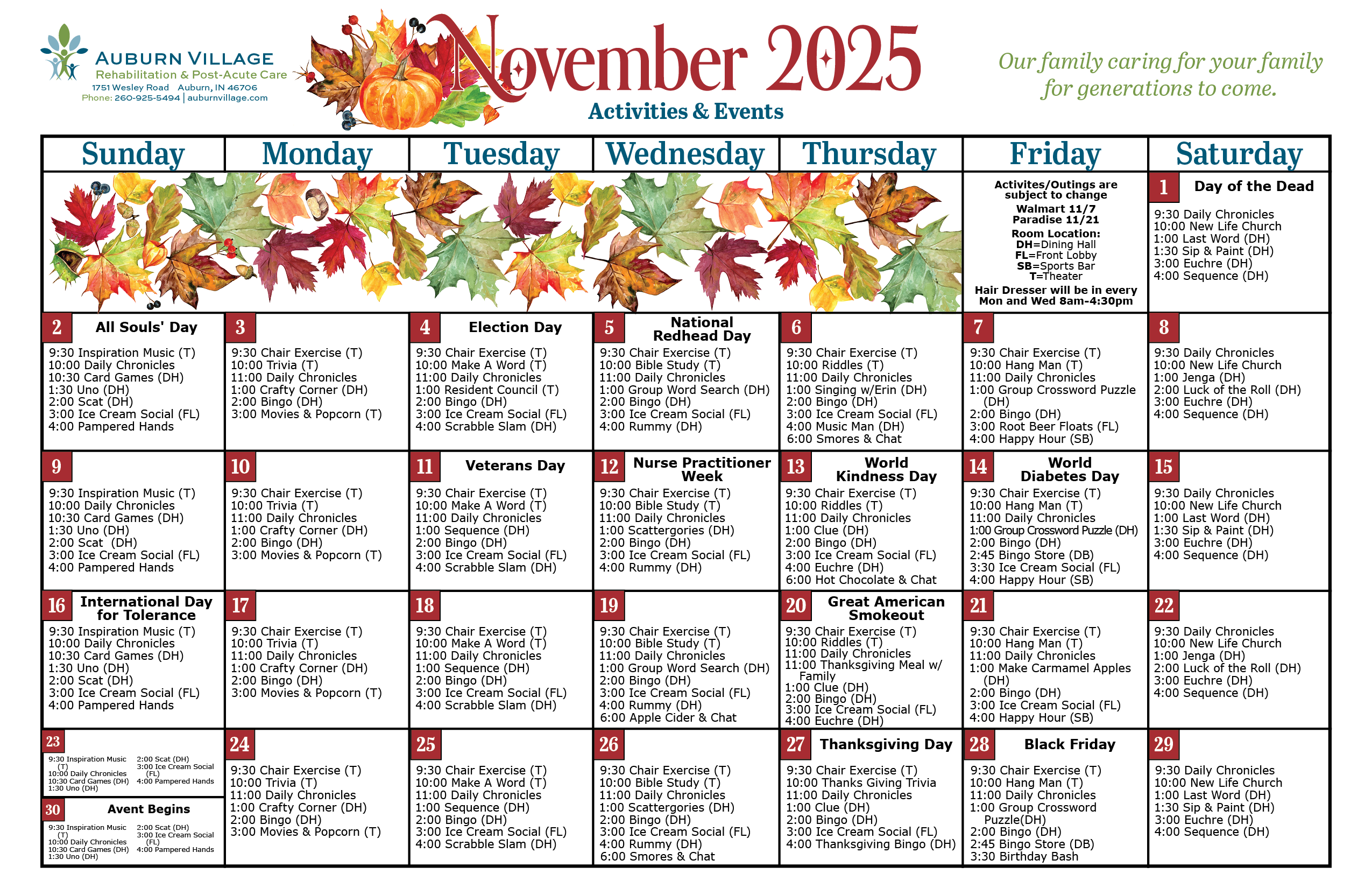 - Empowerment Activities: Activities that offer opportunities for volunteering at Auburn Village and in the community.